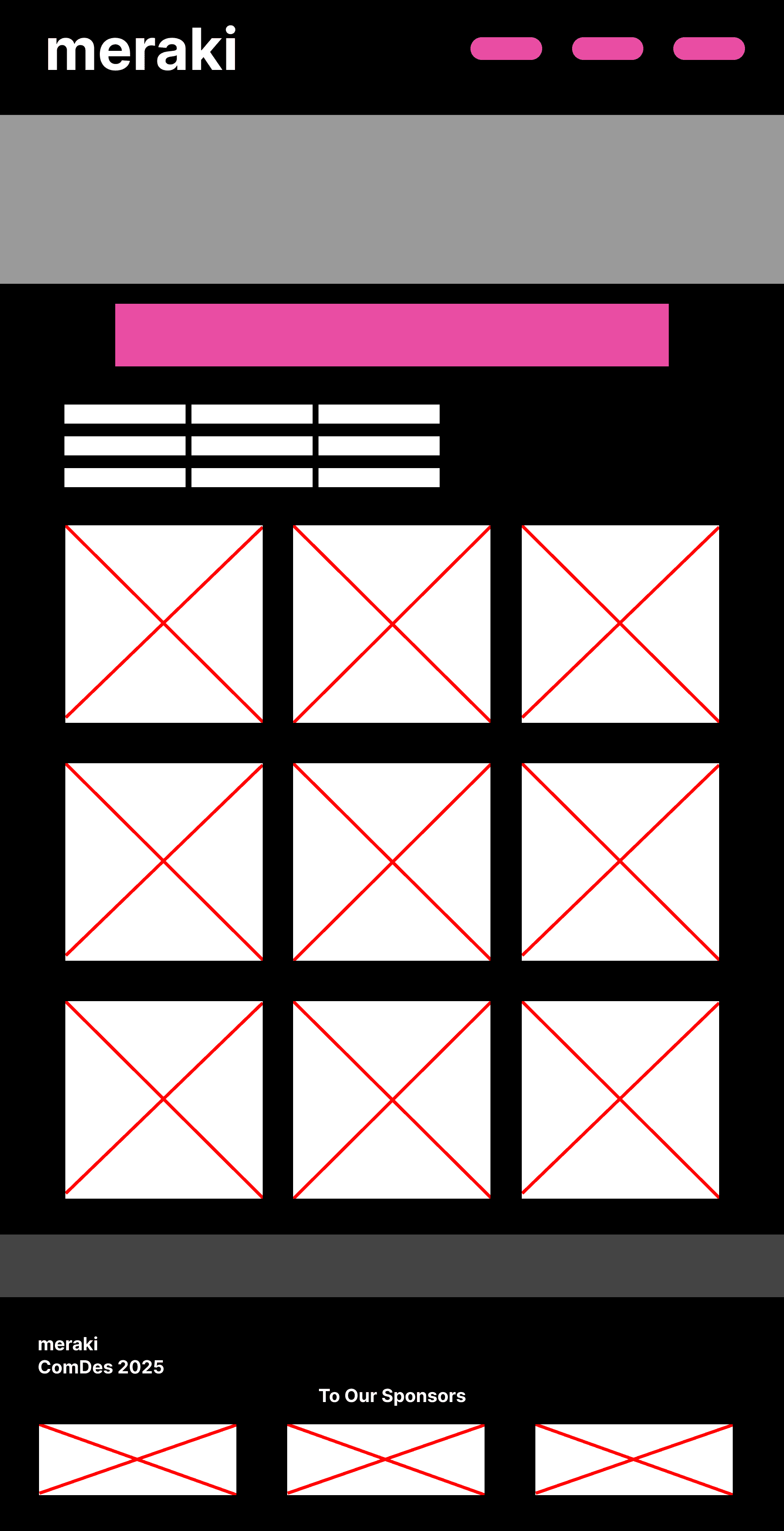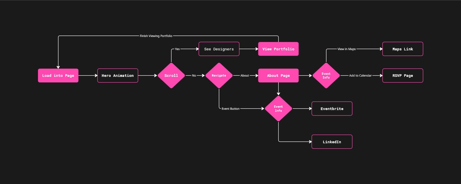 A responsive website that promotes and gives details for our exhibition event along with being a centralized way to access the portfolios of all graduating designers. The site must extend and compliment the event branding and the content being produced by other committees.
