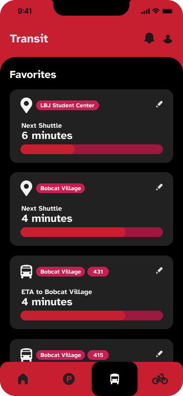 Your mobility command center brings everything together in one place. Pin your frequent bus routes, favorite parking lots, and preferred e-bike stations for instant updates. See shuttle ETAs, parking availability, and nearby transport options at a glance, saving valuable time on your daily commute.